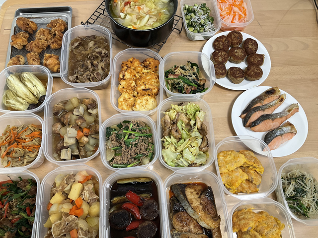 休日は、夕食、並びに数日の作り置きに取り組んでおります。