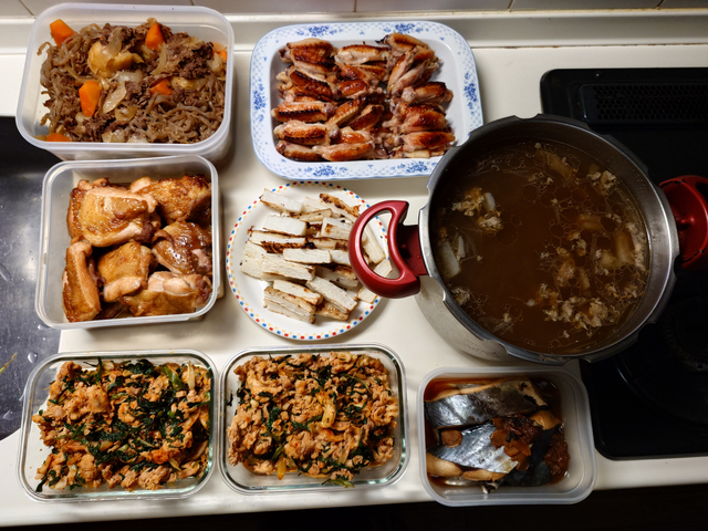 肉魚4種くらい、野菜10種〜(玉葱、人参、長葱、芋、ニンニク、生姜は必ずその他はお好みで。)卵、豆腐やお豆、缶詰や乾物もご用意下さい。